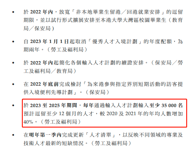 在《2022年施政报告》中,香港特首李家超提出了“抢人才”的目标:2023年至2025年期间,每年通过各项人才计划输入至少35000名人才。