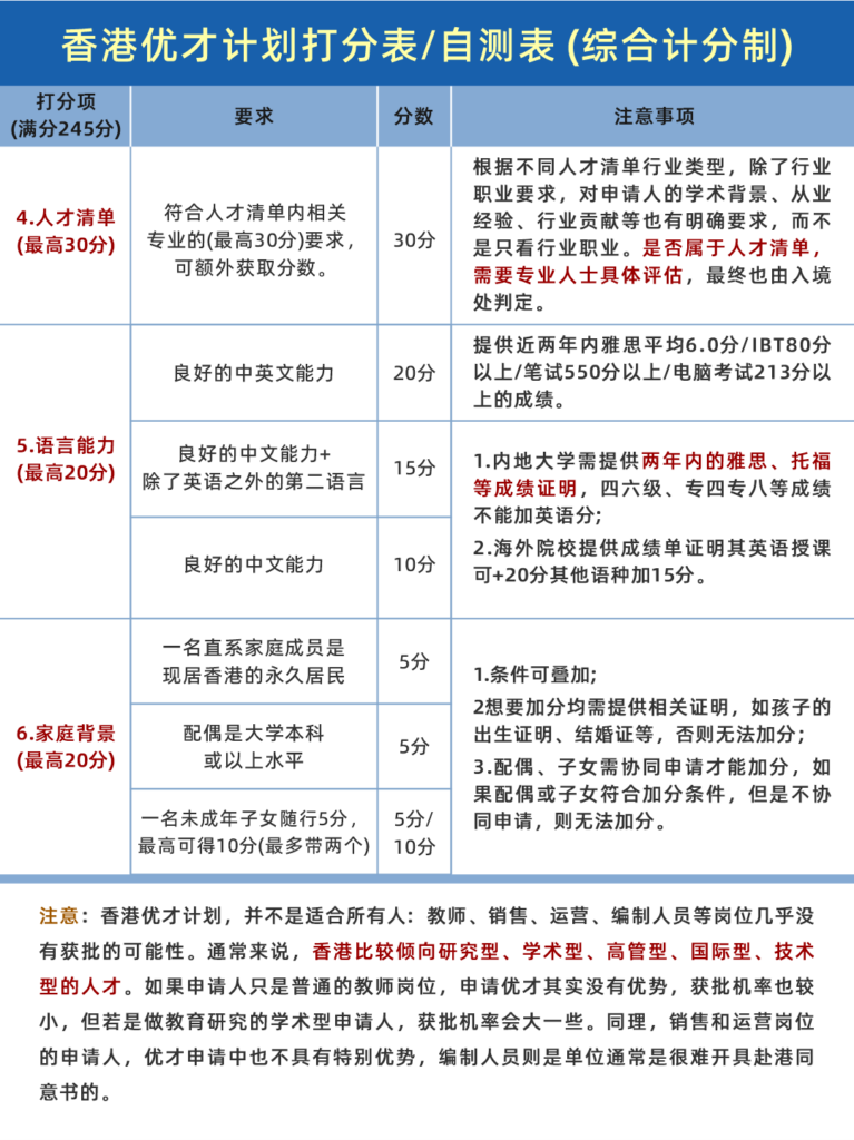 香港优才堪称是人才引进的主力军,优才是最灵活的一种申请方式,且标准更加多元化,虽然有打分表,但其实港府更注重的是从多个维度综合判断申请人的资质。